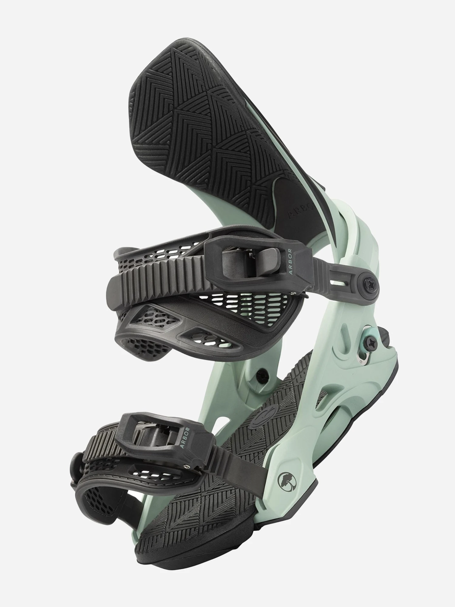 FEATURES:Snowboard BindingsBaseplate: System X – The System X design evenly distributes a rider’s energy into their snowboard. No matter where pressure is applied to the binding, the System X allocates energy across the baseplate’s structural X shape, and out to the four cardinal points. The result is quicker, more effective control. 15% glass content for added strength and stability50A Durometer Outsole – The Outsole is a dampening interface made from a special TPE rubber. The Outsole integrates with the System X design and sits between the binding and a rider’s snowboard. The Outsole diffuses high-frequency chatter while providing rebound and cushion for high-impact landings. On the Cypress, Arbor uses a slightly stiffer durometer TPE for added performanceAdjustable Extruded Aluminum Heelcup – Highly durable extruded aluminum, designed to work with the Mini-Disk for amazing adjustability. Use the highback to center the foot and the disk to fine-tune your stance widthEVA FootbedHighback: Women’s Specific Asymmetrical Highbacks – Arbor bindings feature low mounted asymmetrical highbacks with 5° pre-rotation, providing ergonomic feel and freedom of movementTool-less Forward Lean AdjustmentStraps: Bow-Strap Adjuster – Arbor’s patented “Bow-Strap” adjuster and ladder strap swings out of the way quickly and easily, making binding entry a simple, user-friendly experience. The pre-curved strap steers clear of your boot while maintaining form and durability in even the coldest conditionsUltraGrip Convertible Toe Strap | Dual-Injected Ankle StrapBuckles: Fiberglass Reinforced Nylon Buckles and LeversAdditional Features: Universal 4×4 DiscAbility Level: Advanced – ExpertFlex Rating: MediumBinding Mount Pattern: 2×4, 4×4