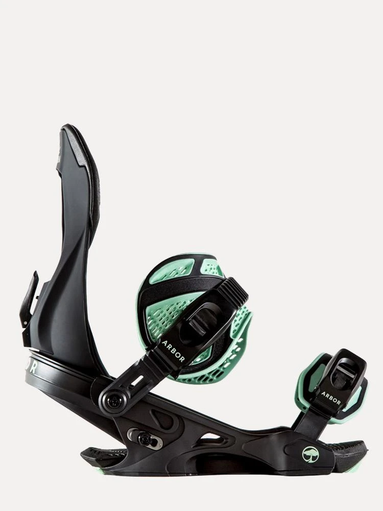FEATURES:Medium flex50A TPE OutsoleEVA FootbedSystem X Baseplate with Fiberglass Reinforcing – The Sequioa features 15% glass content for a softer, more forgiving ride.Tool-less Forward Lean AdjustmentNew Women’s Specific Asymmetrical HighbackNew Dual-Injected Ankle StrapBow-Strap Adjuster – Arbor’s patented Bow-Strap adjuster and ladder strap swings out of the way quickly and easily, making binding entry a simple, user-friendly experience. The pre-curved strap steers clear of your boot while maintaining form and durability in even the coldest conditions.New Women’s Specific Adjustable Aluminum Heelcups – Highly durable extruded aluminum and super adjustable. Use the highback to center the foot and the disk to fine-tune your stance width.Universal 4×4 DiscCast Aluminum Buckles and Levers – New for 2019, Arbor’s upgraded buckles offer clean, ultra reliable performance, long-term durability, and a tighter, stronger click for unparalleled boot to binding connection.