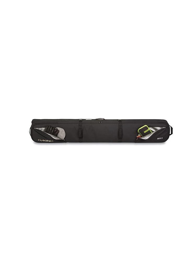 Make sure your skis are protected in the Dakine Boundary Ski Roller Bag that holds two pairs of skis, a pair of boots and a set of poles.