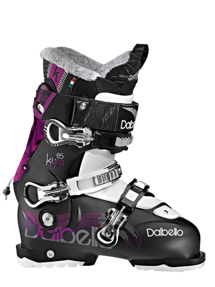The Kyra 85 is targeted toward advanced female skiers seeking an opulent blend of versatility, performance and fit for unlimited access to every aspect of the mountain experience. The Kyra 85 design incorporates many of the structural and performance features of the popular Krypton construction and adds a sturdy and precise Ski/Hike cuff lock for uncompromising performance and freedom to roam. Dalbello s 3 Piece Cabrio design provides responsive and consistent flex with superior lateral and rearward support. 102 mm Contour 4 Fit Technology allows for a close anatomic fit while accommodating the typical hot-spots many skiers encounter. All Kyra models incorporate Dalbello s popular women s specific expandable cuff which provides up to 5cm of adjustability to accommodate any calf. Modern, Center Balanced Rocker Stance allows skiers to take full advantage of their equipment by centering body mass over the sweet spot of their skis for more power and control with less effort. Available with TRUFIT Performer fit system innerboots.