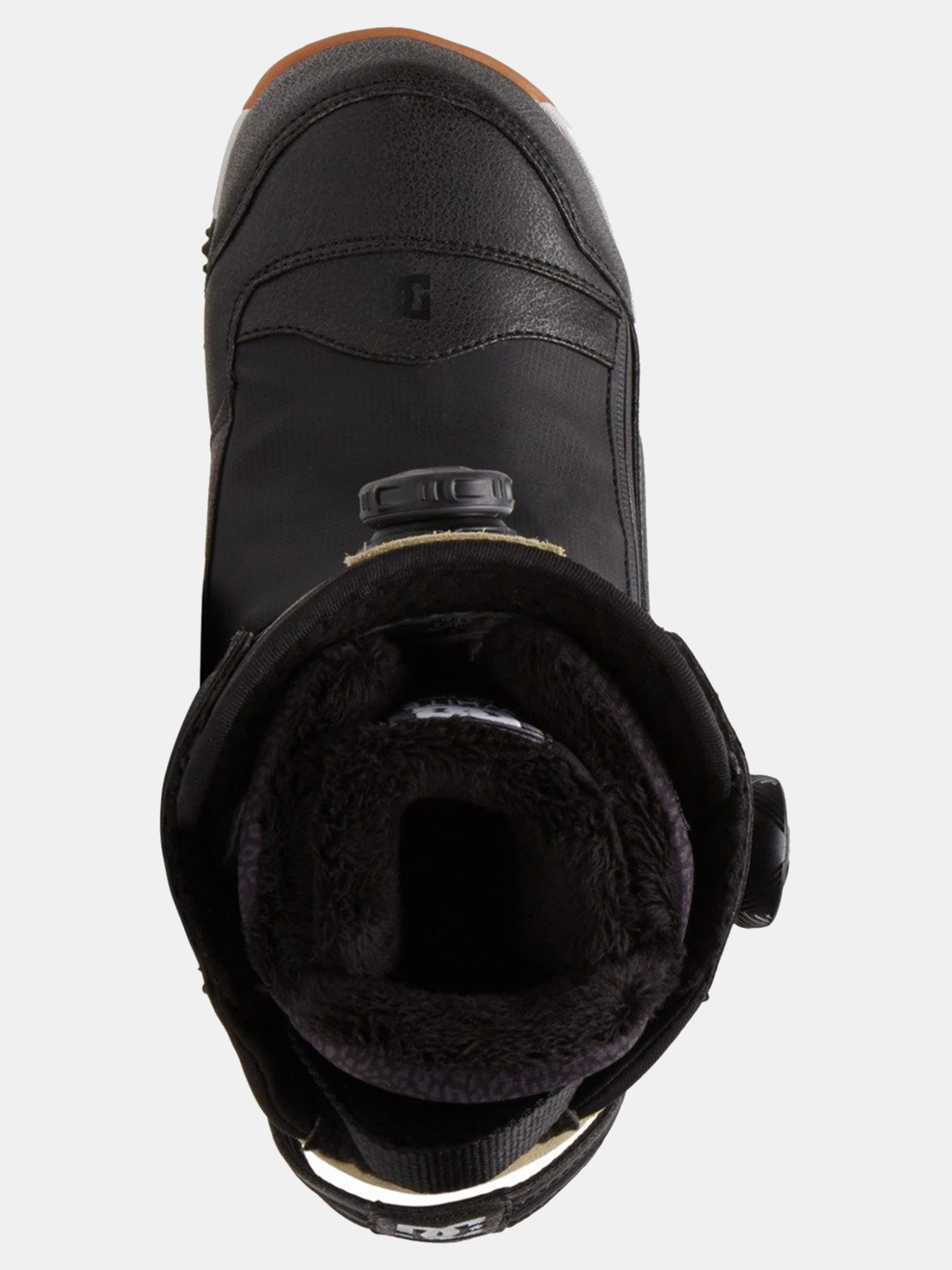 FEATURES:7 (1 Soft – 10 Stiff)Articulated ConstructionWhite Liner – Premium performance, multi-layer construction combining EVA memory foam and high rebound heat-moldable EVA with thermal regulating fleece guarantees out-of-the-box comfort and a truly custom fit. Anatomical J-bars and the 180° power strap deliver support and response.Internal Ankle HarnessDual Boa Closure System with H4 Coiler DialBoa Black SS LacesImpact S Insole – The DC Impact S Insole has been designed and developed literally from the ground up. The insole is created from proprietary single density polyurethane developed for minimizing harsh landings without compromising board feel.Contact Uniliteâ„¢ Outsole – Built from skate shoe DNA, the contact outsole offers skate-style board feel and lightweight, cushioned comfort. It features weight-reducing Uniliteâ„¢ construction with the addition of rubber for durability in the tread’s high-wear zonesStormproofâ„¢ Storm Flap