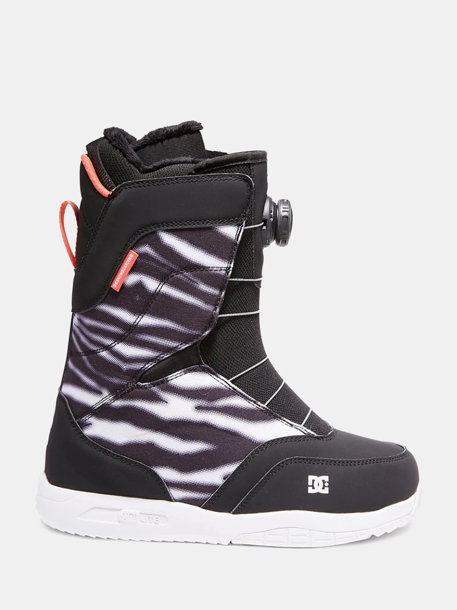 The super stylish & cozy Search boot looks great and rides even better. Bold animal prints are ready to pounce on any terrain thanks to the upgraded BOA® Fit System with sequential lacing, a plush R1 liner and cushy Unilite® outsole. The Search is all-mountain, medium-flex boot with all best DC Snowboarding tech features.