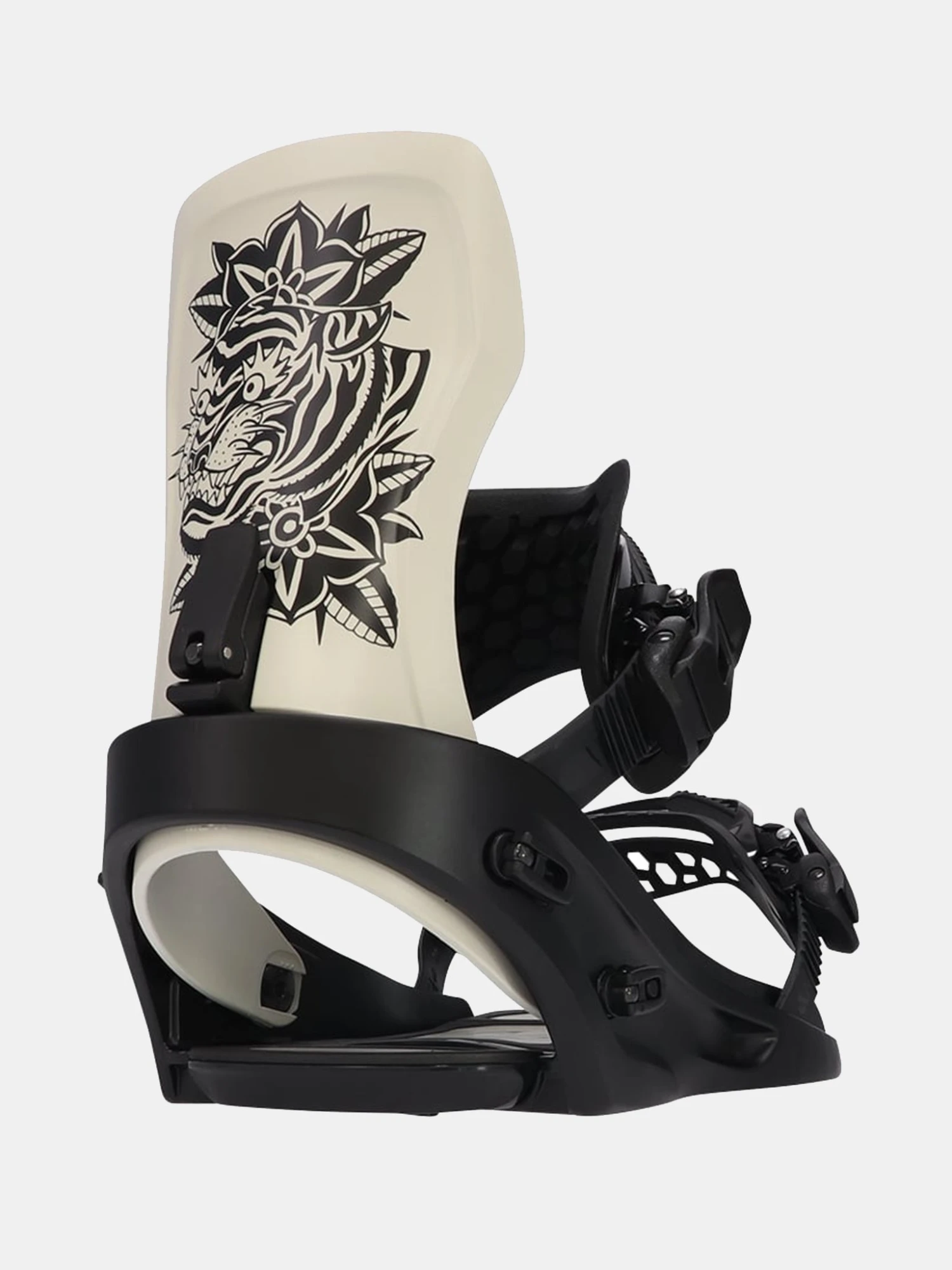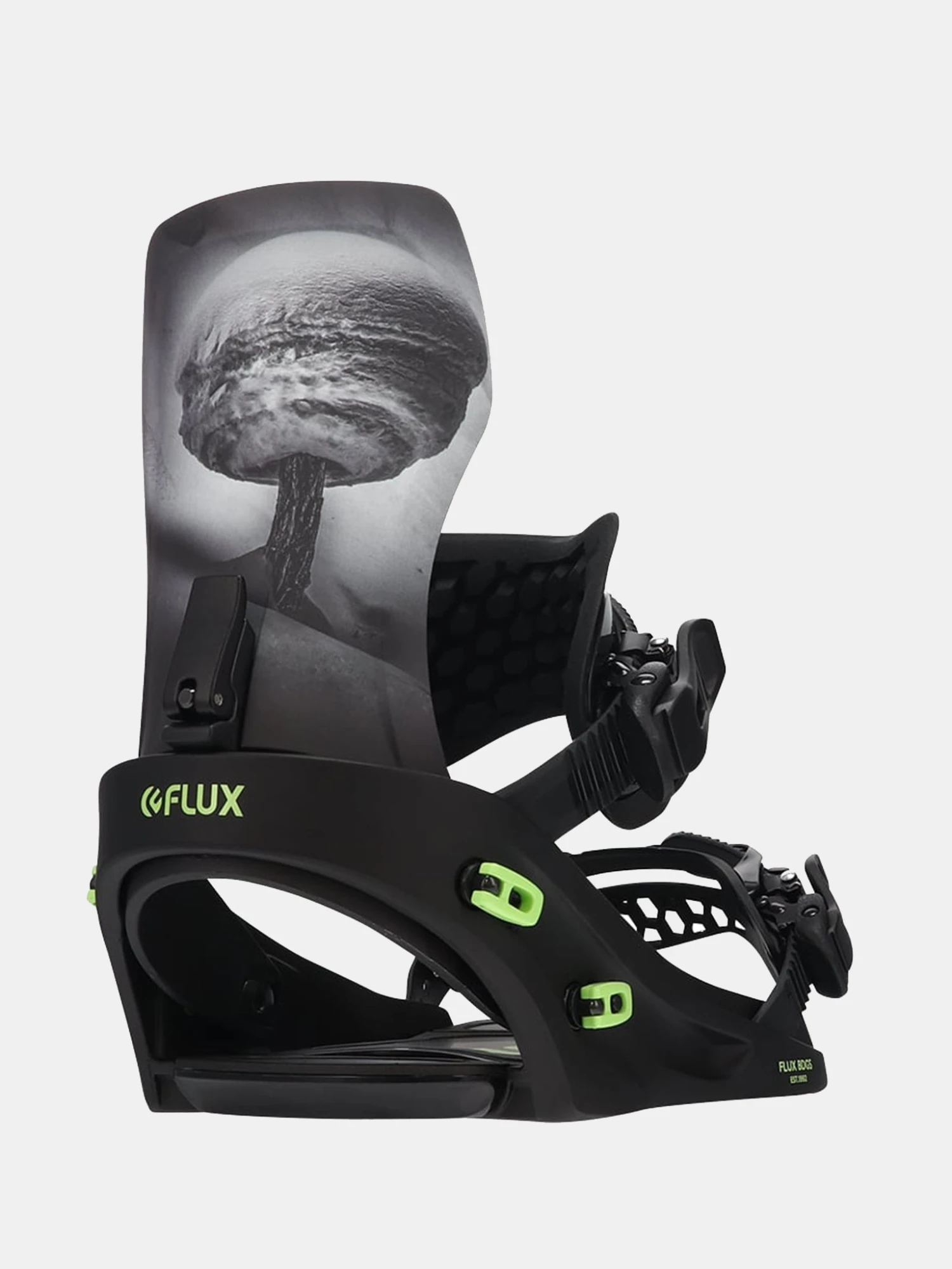 FEATURES: Flex Rating (1 Soft – 5 Stiff) – 4 Transfer Base – Offers unmatched power transfer and direct response with an ultra-lightweight design. Performance Blend – A nylon and fiberglass mix for all-around performance. Adjustable Toe & Heel Cushion – A movable cushion that can be adjusted to suit boot size and board width. Toolless Lever – Find your optimum settings without any tools. The stopper prevents any screws coming loose. FooTon Footbed – Designed with a special material to prevent snow buildup and to provide more direct board feel with all the cushion you need. Multi Disc – In addition to the conventional 4×4 screw holes, this disc is also channel-compatible. Retro-Mod Highback – The outside takes on a classically symmetric shape. The inner asymmetric structure provides resilience while following the movement of the boots, and offers improves torsion control when landing. Super Tough Nylon – A fiber mix with a medium flex that is perfect for all mountain riding. Redux Lean Adjuster – A highback adjuster that offers precision adjustments when used in unison with the Flux Micro Adjuster. Micro Adjuster – Adjust forward lean in 2.5° increments with each click for finer highback settings. Waffle Strap – Waffle shaped cushioning provides ample hold and unparalleled comfort, and two layer-construction offers direct power transfer. FTM 5.0 Toe Strap – The middle of the strap uses a more rigid material for increased power transfer, with top and bottom ends using a more flexible material for a better boot fit. L-Guide – For a smooth in and out. Holds ratchet ladders down. UU Fit – A 360° wrap evens out pressure for a natural feel and hold.Beer Buckles – Newly engineered buckles give you more leverage when cranking down on the straps allowing you to get to the last click with minimal effort. Functions as a bottle opener in case of beverage emergencies.