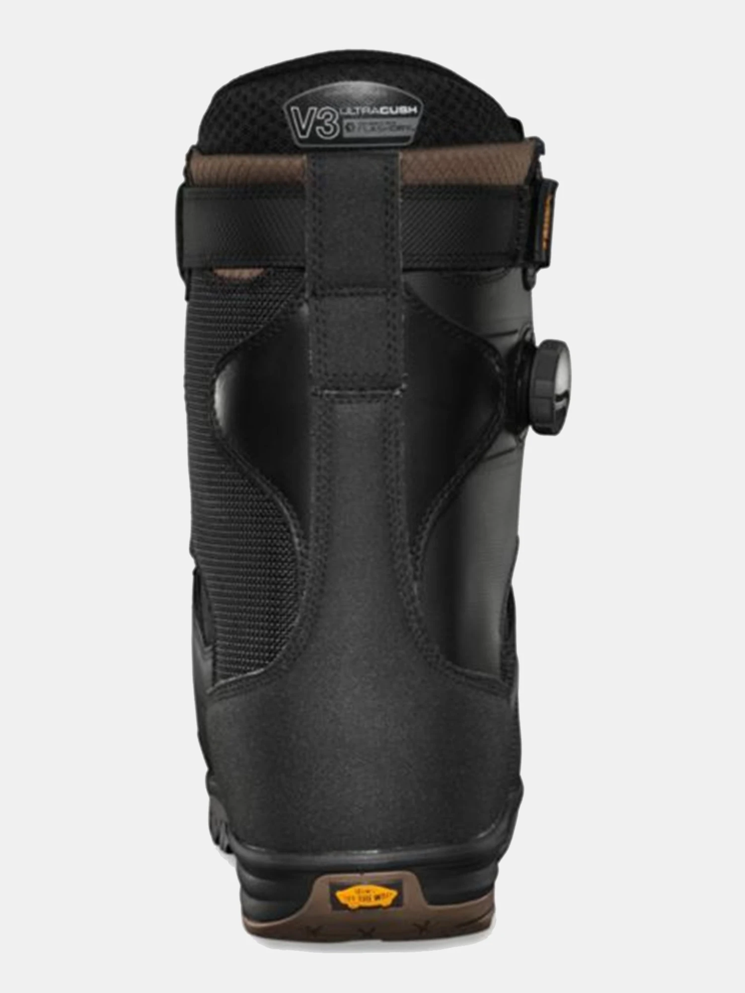 FEATURES:Flex Rating – 5 – 9Vans Flex Control System – Removable high-rebound Hytrel® tongue stiffeners allow riders to custom-tune their flex. Slide them both in for maximum support, use just one to provide either increased lateral or medial response or leave them out for a softer-flexing boot. As boots soften up over the course of a season, you can add the tongue stiffeners back in to extend the life of your boots.Asymmetrical Flex ZoneInstep Flex Zone – The Instep Flex Zone functions to maintain natural ankle flexion in your boot, whether in or out of your bindings.Powercuff Strap – Providing extra support at the top of the boot for increased stability and response. Its configuration gives riders customizable levels of engagement and the option of wrapping the strap around the internal liner or the exterior tongue.Pleasurecuff – The supple elasticity of the PleasureCuff delivers a cushioned, comfortable fit that keeps your calves supported.V3 Ultracush with TNF FlashDry Liner – The most advanced liner ever from Vans, this inner features The North Face’s FlashDry fabric, which transfers and eliminates moisture. An UltraCush layer provides all-day comfort with minimal seams, and a neoprene forefoot gives a natural flex. A dual-density heat-moldable core is bolstered by the latest X-Cage–extra security and heel hold that keeps you in contact with your board at all times.V3 Boot Harness – This advanced support harness delivers the highest level of support to the ankle and instep, keeping the V3 liner and boot shell locked in and connected.Vans Hybrid Plus Boa – The Hybrid system merges traditional lacing with the power of Boa closure at the instep. The Hybrid Plus system expands the range of flex control by adding an extra Boa pass around the back of the boot and across the instep to optimize the lines of pull and maximize flex control.Vans Custom Slide Guide – Anatomical shape provides adjustable fit anywhere along the instep area for added comfort and unrivaled heel hold.V3 POPCUSH Footbed – A triple density footbed that combines impact cushioning with energy transfer, the V3 POPCUSH fights fatigue with anatomical shaping, arch support, a moisture-wicking topsheet and OrthoLite® open-cell top foam.V3 UltimateWaffle – UltraCush midsole construction for lightweight performance and advanced dampening. Aggressive perimeter lug pattern for increased traction and optimum snow release. Co-molded asymmetrical ESS arch cradle for additional support and response.Waterproof Breathable Valves – Moisture management through waterproof valves ensures breathability–meaning dry socks, dry feet, and a more comfortable and longer ride.Heat Retention 360º – All Vans snowboard boots feature a newly improved thermal retention layer that provides a 360° wrap of the toe box and between the outsole and the liner. This essential layer keeps heat in and cold out, ensuring all-day warmth and comfort.